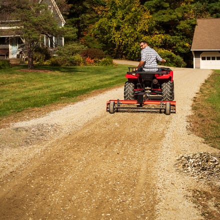 14 carbide-tipped grading teeth loosen hard-packed dirt and gravel to remove bumps and washboard, and fill in potholes. The rear leveling blade then spreads the loosened material evenly.